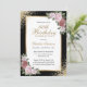 Invitation Blush Floral Black Gold Confetti 60e anniversaire