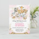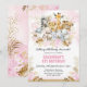 Invitation d'anniversaire Safari thématique avec des feuilles féminins tropicaux blush et or aquarelle et un groupe de mignons animaux de la jungle