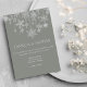 A blush gray and silver glitter snowflake Christmas winter wonderland wedding invitation is perfect for the holiday season. on a mauve gray background featuring white and silver-grey glitter snowflake frame.