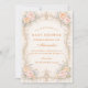 A romantic blend of soft blush and peach roses arranged within sculpted ivory scrollwork, creating an elegant baroque frame with timeless appeal. Delicate lavender sprigs and muted greenery add depth while keeping the palette airy and refined. The warm golden typography complements the floral tones, giving the design a graceful European charm. Perfect for a classic, feminine celebration with a luxurious yet gentle aesthetic.