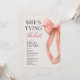 Invite guests in style with this romantic She’s Tying the Knot bridal shower invitation. Featuring a soft blush pink bow and matching script accents, this design blends elegance and modern femininity. Clean serif text, warm blush tones, and a refined layout make this template easy to personalize and perfect for print. A beautiful choice for chic, romantic, or modern bridal celebrations.