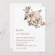 This informal wedding invitation with first names only features three dimensional blush flowers and rose gold leaves with shadows.