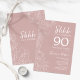 Blush rose et blanc surprise 90ème anniversaire invitation. Le design féminin moderne présente des accents botaniques et des caractères typographiques. Elégante carte invitation florale parfaite pour une célébration anniversaire surprise femme élégante. Invitations Zazzle imprimées ou téléchargement instantané modèle imprimable numérique.