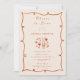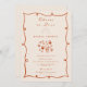A chic and minimal blush bridal shower design inspired by a wine-tasting celebration. This layout features elegant line-art illustrations of wine glasses, citrus slices, and a bottle motif framed by a playful hand-drawn border. The soft peach background and terracotta accents create a warm, modern look perfect for vineyard showers, winery events, or brides who love a refined yet fun aesthetic. Personalize the text to match your theme and create a stylish invitation guests will love.