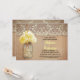 Jolie invitation à la douche nuptiale rustique avec bocal de mason à fleur d'hydrangée jaune. Invitation parfait pour la douche nuptiale avec dentelle vintage et des accents de bois en détresse.