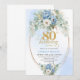 Invitation Bohemian Blue Peony Floral Gold Frame 80th Invite