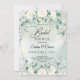 Invitation Boho aquarelle blanche roses eucalyptus cadre or