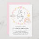 Invitation Whimsical boho bébé fille douche avec des aquarelles roses et jaunes d'un arc-en-ciel, soleil, coeurs, étoiles, lunes et nuages, "Oh Baby!" dans un script élégant et le nom de la future mère et les détails de la douche dans la typographie simple.