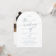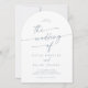 Cette photo en ardoise bleue et faire-part de mariage en arc de code QR est parfaite pour un mariage minimaliste. Le design bohème moderne, bleu et blanc pâle et poussiéreux, se compose d'une calligraphie rustique simple au style unique mais classique. Personnalisez le dos de votre invitation de mariage avec votre photo fiançailles préférée. Inclure un code QR pour que l'invité puisse facilement RSVP, afficher les détails ou les deux.