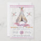 Aquarelle Boho Baby Pink Girl invitation Baby shower avec tipi (tipi) tribal orné de fleurs roses et flèches croisées - ruban d'aquarelle et plus de flèches comme éléments d'ornement tous placés sur blanc lavage bois rustique - à l'arrière un motif de flèche bohème tribal pour correspondre au devant - Nous avons facilité la personnalisation de cette invitation - L'invitation de baby shower tribal de cette fille est facilement customisé pour votre événement il suffit d'ajouter vos détails.