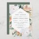 L'élégante invitation à baby showers floraux sans sexe présente un cadre hexagonal allongé de fleurs d'aquarelle et de feuillage dans des tons de pêche, de blanc, d'ivoire et de vert sauge inspirés du désert du boho. Personnalisez avec vos détails de baby shower en lettres modernes.
