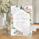 L'élégante invitation à la bat mitzvah florale présente un cadre hexagonal allongé de fleurs d'aquarelle et de feuillage dans des tons boho désert inspirés de pêche, blanc, ivoire et vert sauge. Personnalisez avec votre cérémonie de bat mitzvah et les détails de la fête en lettres modernes.