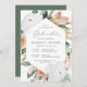 L'élégante invitation à la dédicace florale pour bébé présente un cadre hexagonal allongé de fleurs d'aquarelle et de feuillage dans des tons de pêche, blanc, ivoire et vert sauge inspirés du désert du boho. Personnalisez avec votre cérémonie de dédicace de l'église et les détails de la fête en lettres modernes.