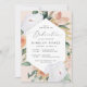 L'élégante invitation à la dédicace florale pour bébé présente un cadre hexagonal allongé de fleurs d'aquarelle et de feuillage dans des tons de pêche, blanc, ivoire et vert sauge inspirés du désert du boho. Personnalisez avec votre cérémonie de dédicace de l'église et les détails de la fête en lettres modernes.