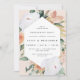 L'élégante invitation à la fête de fiançailles florales présente un cadre hexagonal allongé de fleurs d'aquarelle et de feuillage dans des teintes de pêche, de blanc, d'ivoire et de vert sauge inspirées du désert du boho. Personnalisez avec les détails de votre fiançailles en lettres modernes.