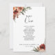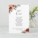 Ce tableau d'automne botanique numéro 1 est parfait pour un mariage rustique. Le design est composé d'élégantes fleurs de automne bordeaux, marron, blanches, rousses, inspirant beauté artistique. La carte imprime recto verso (recto verso)