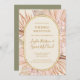 Cette invitation de réception de mariage botanique boho vert olive est parfaite pour votre réception de mariage élégante et rustique avec des fleurs, du vert, du pêche, et des accents rose gold. Le design présente un cadre ou un bouquet doré avec de l'herbe de pampa rose moderne, du simple sauge, de l'ivoire, une feuille de palmier champagne et une verdure de plage classique. Les fleurs peuvent inclure des roses roses et des orchidées. Le design est idéal pour un mariage classe et vintage avec des tons terracotta, beige, rouille, pour l'hiver, le printemps ou l'automne. Veuillez trouver d'autres papeteries de mariage assorties ou coordonnées dans le reste de la collection.