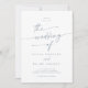 Cette photo en ardoise bleue chic et faire-part de mariage de code QR est parfaite pour un mariage minimaliste. Le design bohème moderne, bleu et blanc pâle et poussiéreux, se compose d'une calligraphie rustique simple au style unique mais classique. Personnalisez le dos de votre invitation de mariage avec votre photo fiançailles préférée. Inclure un code QR pour que l'invité puisse facilement RSVP, afficher les détails ou les deux.