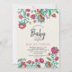 Une invitation Boho, Bohemian Chic Baby shower avec belle motif de fleurs folkloriques peintes à la main et élégantes.
