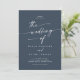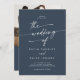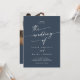 Ce chic boho bleu marine et faire-part de mariage de code QR est parfait pour un mariage minimaliste. Le design bohème moderne, neutre et muet, bleu foncé, présente une calligraphie rustique simple au style unique mais classique. Personnalisez le dos de votre invitation de mariage avec votre photo fiançailles préférée. Inclure un code QR pour que l'invité puisse facilement RSVP, afficher les détails ou les deux.
