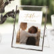 Ces numéros de table en or chic et blanc boho sont parfaits pour un mariage minimaliste. L'or jaune neutre et le design bohème moderne blanc présentent une calligraphie rustique simple avec un style unique mais classique. La conception s'imprime à l'avant et à l'arrière. Customisez vos numéros de table avec un nom de table et une photo personnalisés; idéal pour un thème de voyage! Personnalisez chaque numéro de table dont vous avez besoin, en ajoutant chacun à votre panier individuellement.