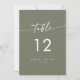 Ces numéros de table chic et vert olive de sauce sont parfaits pour un mariage minimaliste. La tonalité bohème vert foncé bohème moderne est composée d'une calligraphie rustique simple au style unique mais classique. La conception s'imprime à l'avant et à l'arrière. Customisez vos numéros de table avec vos noms et votre date. Personnalisez chaque numéro de table dont vous avez besoin, en ajoutant chacun à votre panier individuellement.