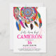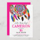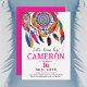 Cette grande invitation à la fête d'anniversaire de Dream bohème présente un design coloré avec un script rose ludique et un attrapeur de rêve aquarelle avec des plumes indiennes sur un arrière - plan blanc. Le dos a un arrière - plan rose. C'est une façon exquise d'invitation vos amis et votre famille à votre sommeil | soirée d'aube ou à un événement sur le thème du patrimoine amérindien. Vous pouvez personnaliser tous les textes et faire votre propre invitation artistique unique! Disponible aussi bien en format imprimé qu'en format numérique.