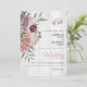 Un magnifique faire-part de mariage aux fleurs d'aquarelle peintes à la main dans les tons roses chauds et ivoire avec une touche de verdure d'eucalyptus sur un arrière - plan rustique en bois blanc. La carte revient à une teinte chaleureuse de rose poussiéreux. Un choix idéal pour votre thème vintage ou bohème mariage. Vous pouvez ajouter vos renseignements personnels en allant dans le menu personnaliser. Il fait partie d'une suite de mariage élégante avec enveloppe, menu, cartes de séjour et autres essentiels assortis.