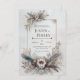 Invite your guests to a celebration of bohemian romance and natural elegance with this exquisite wedding invitation. The design features a stunning central gold rectangular frame with delicate corner dotting and stylized accents, set against a soft, textured off-white backdrop. The frame is beautifully anchored by two dramatic clusters of soft, layered beige, gray, and dusty blue feathers, intertwined with pale pink, mauve, and deep pink center flowers. Intricate gold scrollwork and a mandala-like medallion anchor the bottom cluster, adding an opulent, antique luxury accent. This aesthetic perfectly blends cool, earthy textures with opulent metallic accents, perfectly setting the stage for a unique, stylish, or desert-themed wedding. This invitation card is ideally suited for a bohemian style wedding, a chic engagement celebration, or an outdoor fall reception. It would also perfectly suit a sophisticated desert-themed party or a serene, elegant vow renewal ceremony. The card's captivating blend of pristine florals and a moody, monochromatic backdrop ensures it is versatile for any solemn ceremony, corporate gala, or refined birthday announcement.