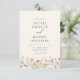 Immergez vos invités dans la nature romantique avec notre Fleur sauvage Boho Garden Wedding Invitation. Inspirée par la beauté des fleurs intactes, cette invitation capte l'essence d'une célébration libre-spirituelle. Le design enchanteur propose des fleurs sauvages délicats dansant au milieu d'une végétation luxuriante, donnant le ton parfait pour votre mariage dans le jardin. L'esthétique boho-chic est complétée par des tons terreux, créant une atmosphère de rêve que les invitations invités à partager dans la magie de votre histoire d'amour. L'invitation minutieusement conçue promet un voyage inoubliable, invitant les proches à assister à l'union de deux âmes au milieu de la beauté de la toile de la nature. Avec son charme rustique et ses détails fantaisistes, cette invitation est un témoignage de l'amour unique qui fleurit dans le jardin de vos coeurs. Que cette invitation soit le premier aperçu du jour enchanteur qui vous attend, promettant une célébration aussi intemporelle et vivante que les fleurs sauvages eux-mêmes.