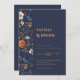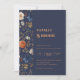 Ce faire-part de mariage d'inspiration française est décoré d'un design floral rustique peint à la main et agrémenté de plantes naturelles. C'est une invitation élégante imprimée dans une police Abrilfatface couleur rouille. Modifiez facilement le modèle pour convenir à votre événement. La carte de retour a une couleur solide et les noms du couple mariage. Modifiez facilement le modèle aux noms et aux coordonnées du mariage de votre mariée et de votre époux. L'invitation a fait équipe avec deux polices serif traditionnelles, créant un look élégant et moderne. Voir notre collection pour plus de grands produits de suite mariages dans ce thème. Faire-part de mariage de rouille bleu floral. Les couleurs clés sont le Hex bleu marine #2B324B et le Hex en terre cuite #E09760.
