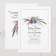 Célébrez la future maman avec cette invitation baby shower d'inspiration boho avec un arrangement d'aquarelle de fleurs violettes, succulents, et des plumes délicates. Le design minimaliste avec une bordure violette chic ajoute une touche moderne et élégante, parfaite pour des baby showers neutres ou rustiques. Entièrement personnalisable avec les détails de votre événement.