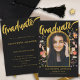Fêtez l’obtention du diplôme d’études supérieures de votre fille grâce à une invitation à la fête de remise de diplômes chic et sincère! Cette Invitation de Graduation Party en or moderne et en noir Script Calligraphy est conçue pour capturer l'excitation et la joie de cette étape spéciale. Doté d'élégantes calligraphies dorées et d'une arche fleur sauvage d'aquarelle fantaisiste sur un arrière - plan noir, cette invitation dégage un charme élégant, et la célébration. Le recto met en valeur le nom de votre fille et les détails de la fête en typographie de script doré sur un arrière - plan noir, tandis que le verso contient des informations supplémentaires sur l’événement en typographie dorée moderne. Cette invitation comprend un modèle photo facile à utiliser, vous permettant de le personnaliser avec une photo chère de votre diplômé, ce qui le rend vraiment spécial. OEuvre d'art originale et design de l'artiste Catherine Sweetman, cette carte unique est la meilleure façon de partager l'excitation de son diplôme d'études supérieures et des amis et de la famille invitations de se joindre aux festivités. Une belle façon de célébrer son incroyable exploit et le début de son prochain chapitre!