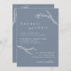 Invitation Boho Floral Outline Dusty Blue Tout en un code QR