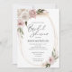 Cette élégante invitation à la douche nuptiale à fleurs boho rose est parfaite pour une élégante douche nuptiale de jardin de printemps ou d'été. Le design présente une belle aquarelle blanche et rose vif florales avec de l'herbe de pampas, des palmiers séchés et de la verdure d'eucalyptus. Faites cette invitation vous-même en incluant vos noms et tous les détails de votre fête.
