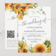 Modern rustic botanical sunflowers budget affordable all in one black and white wedding invitation with custom photo, QR code to website, and online rsvp featuring a chic handwriting calligraphy script. +++++ Suitable for rustic modern summer or autumn fall garden or outdoor backyard farmhouse barn weddings.