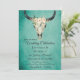Invitation Boho Floral Vache crâne sur Mariage Turquoise