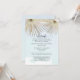 DETAILS DE MARIAGE À AJOUTER À VOS FAIRE-PART. "Faire-part de mariage avec détails de jungle boho aux palmiers et feuillage bleu de bord de mer." À utiliser pour les invités hors de la ville qui pourraient avoir besoin de détails sur l'hébergement et d'informations sur l'événement. Lavis aquarelle moderne peint à la main, bleu poussiéreux se fondant en aquarelle douce aqua qui ajoute couleur et style. Palmiers éventails séchés boho tropicaux et fleurs de pampas grasses assourdies et verdure aux tons terreux assourdis. Œuvre peinte par l'artiste Audrey Jeanne Roberts, acclamée à l'international et licenciée, copyright.