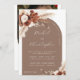 Cette élégante faire-part de mariage boho dispose de deux (2) belles terracotta pampas rustique bouquets de fleurs d'herbe dans un désert de mariage boho thème de couleur terre. Il est accompagné de la formulation dans une calligraphie moderne et une simple police bloc serif et a une photo en forme d'arc. De plus, vous pouvez ajouter un code QR au dos pour diriger vos invités vers RSVP votre événement mariage. Cette florale rustique couleur terre cuite conviendra à tous ceux qui souhaitent un Boho, un désert, un automne ou un mariage jardin rustique. Il fonctionne bien avec d'autres thèmes mariages aussi et certainement un grand ajout à votre mariage. Ce thème de couleur boho terre mariage de désert est disponible en quatre couleurs. Vous pouvez customiser l'invitation avec votre photo et votre code QR — il suffit de le remplacer au dos par le vôtre dans la case "personnaliser ce modèle". Cependant, vous pouvez customiser et personnaliser l'invitation pour répondre à vos besoins mariages — il suffit de cliquer sur la personnaliser de l'invitation. Veuillez noter : Les termes "avec les familles" et "réception à suivre" sur le devant et "détails+rsvp" sur le dos avec les bouquets floraux sont fixes et ne peuvent pas être modifiés, déplacés ou supprimés. Vous pouvez facilement personnaliser l'invitation avec le texte comme un téléchargement numérique et l'envoyer électroniquement et le partager avec vos invités par SMS, email, ou médias sociaux. Ou vous pouvez également choisir de poster l'invitation concernant vos détails à vos invités. Ou vous pouvez obtenir les deux — invitation imprimée et obtenir l'invitation sous forme numérique en téléchargement instantané.