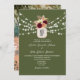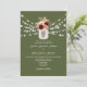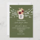Elégant, chic, boho, aquarelle florale, pêche bordeaux et faire-part de mariage verte avec photo, site web et code QR pour rsvp.