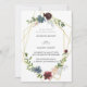 Capturer le charme rustique d'un automne à la campagne avec une verdure aquarelle et des teintes automnales simples. Ajoutez une touche bohème avec des fleurs de marguerite, des dessins géométriques modernes et une palette de marine, de bleu poussiéreux et de bleu clair pour un mariage sur le thème bleu mémorable.
