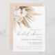 Une élégante invitation à la douche nuptiale avec un agencement d'angle de roses d'aquarelle, orchidées et gazon de pampas et "douche nuptiale" en police calligraphie moderne.