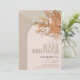 Cette invitation à baby shower de fille de boho présente un arrière - plan rose et brun clair/brun avec de l'herbe de pampas et des feuilles secs. L'envers est orné d'un arrière - plan marron. Personnalisez-le selon vos besoins. Vous pouvez trouver des produits correspondants dans mon magasin.