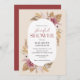 Cette invitation à la douche nuptiale présente des motifs boho agrémentés de fleurs d'or roses, d'herbe de pampas et de palmiers séchés.