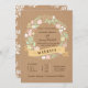 Cette suite de faire-part de mariage rustique est tenue par une couronne de fleurs de pastel dessinée à la main sur du papier d'artisanat marron clair. Une bannière branchée de ruban ajoute une ambiance boho artistique, ce qui en fait un endroit parfait pour les mariages en plein air détendus.