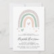 Une jolie conduite neutre de genre par invitation baby shower avec une aquarelle boho d'un vert sauge, orange et lavande arc-en-ciel avec des coeurs, le nom de la mère dans un script élégant et le lecteur par des détails de douche dans la typographie simple.