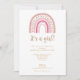 Un mignon 'C'est une fille ! ' Invitation baby shower avec une illustration arc-en-ciel rose et or boho. Customisez avec vos coordonnées pour informer vos invités de votre événement.
