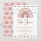 Invitation de fête de prélude pour l'arrivée de bébé Foster de style bohème arc-en-ciel dans des tons chauds de terre cuite et de rose pâle. Cliquez sur le bouton "personnaliser davantage" si vous souhaitez réorganiser et formater le style et l'emplacement du texte.