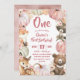 Boho rose bois Citrouille fille 1er anniversaire Invitation