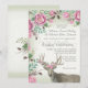 Un joli arrière - plan vert sauge et blanc crémeux sur ce Boho, Rose de Bohème, cerf de couronne florale avec faire-part de mariage de bois, est parfait pour la mariée et le marié qui aime la nature et sont sauvages et libres d'esprit! Mains peintes en acrylique aquarelle sur toile, les roses sauvages roses ont des centres jaunes chauds associés à des feuilles de chêne brun, des fougères et des herbes. Copyright, Audrey Jeanne Roberts